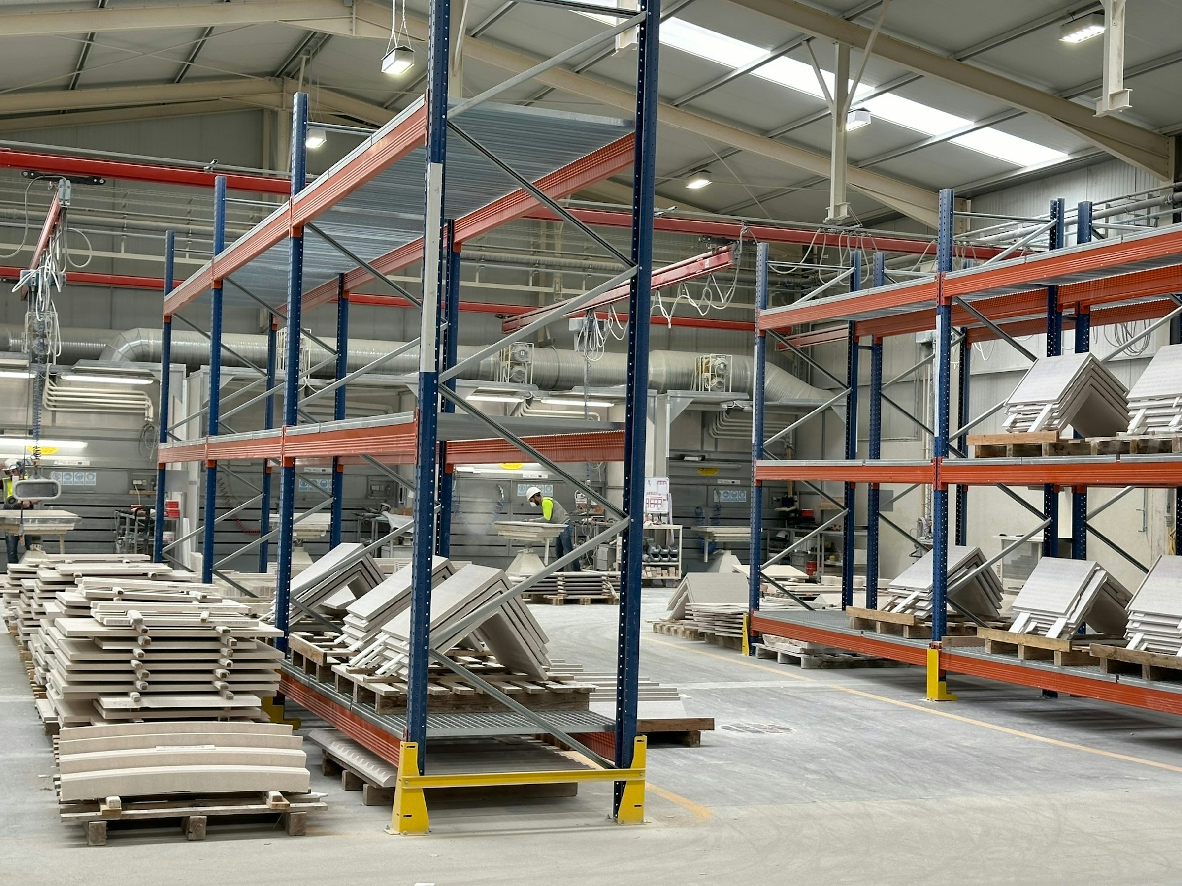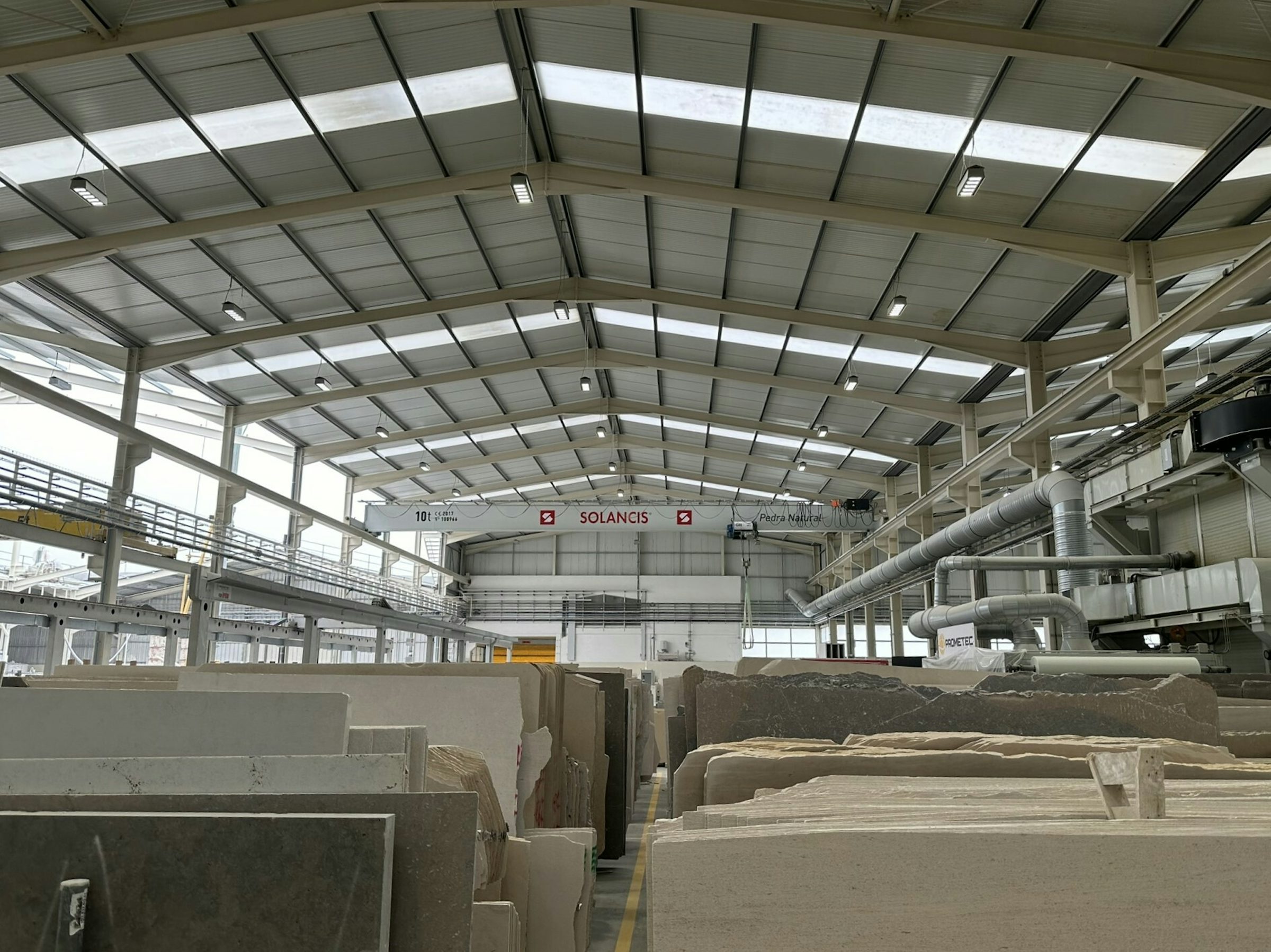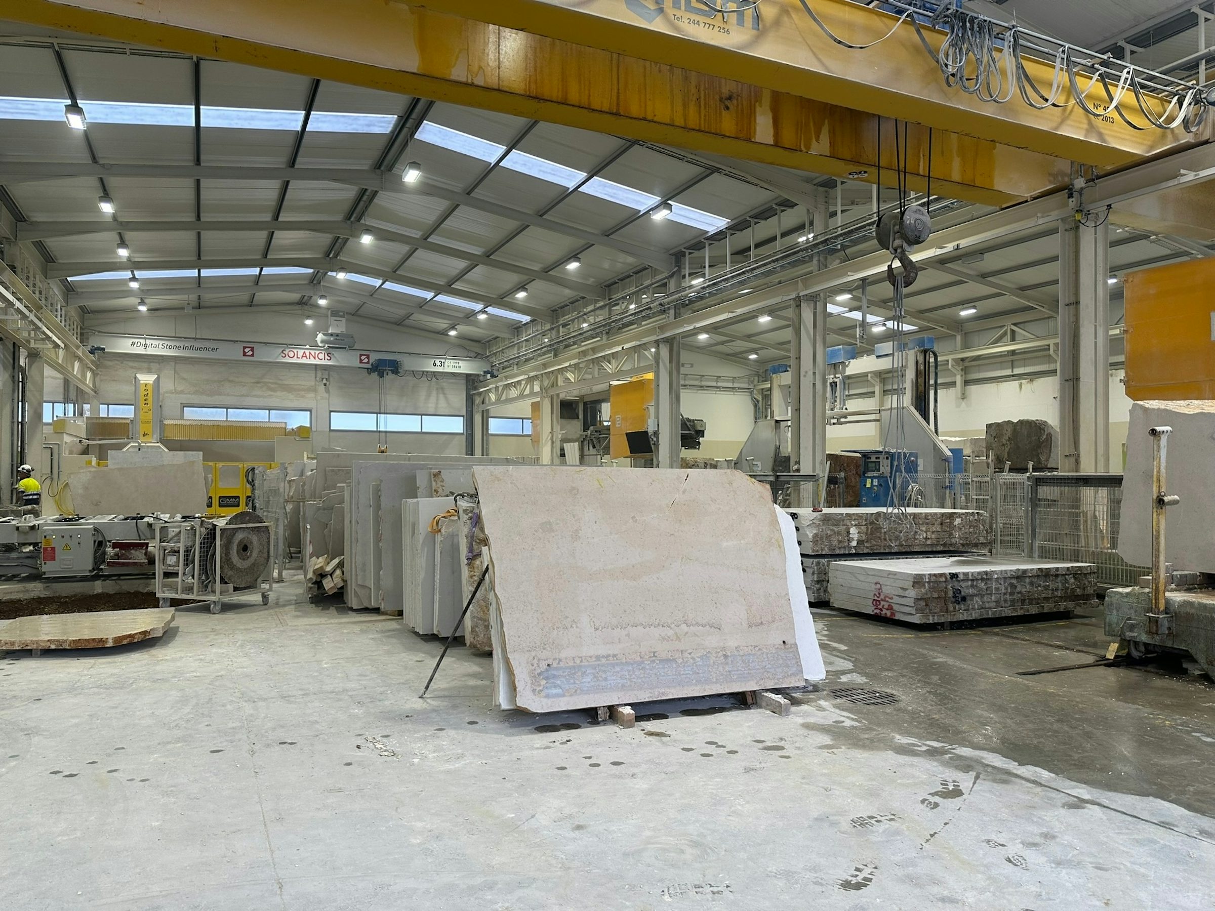 We liked the care we saw in every stage of the process, from quarrying the stone with heavy machinery to moving it to a factory for finishing. The stone was scanned by a machine that identified imperfections and also visually inspected by an expert. This dual process makes it easier to spot problems, work around them, or swap pieces of stone around in a game of high-tech Tetris. Once the stone was scanned, inspected and cut, computer-operated machinery applied finishing. This machine-level precision ensured a consistent look across each panel and a streamlined look for the building. Because Solancis can cut and finish the panels on-site, they can ship directly to the contractor with less logistical fuss. Their care in packing and shipping orders (many of them overseas) is one of the primary reasons we work with them.