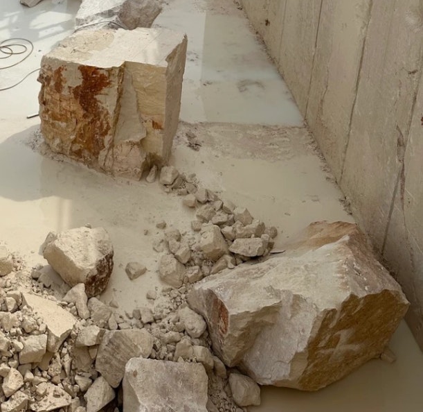 We travel to great lengths to match materials. One recent project had our team travel to Solancis’ quarries in Portugal to finalize a lengthy hunt for the perfect stone.