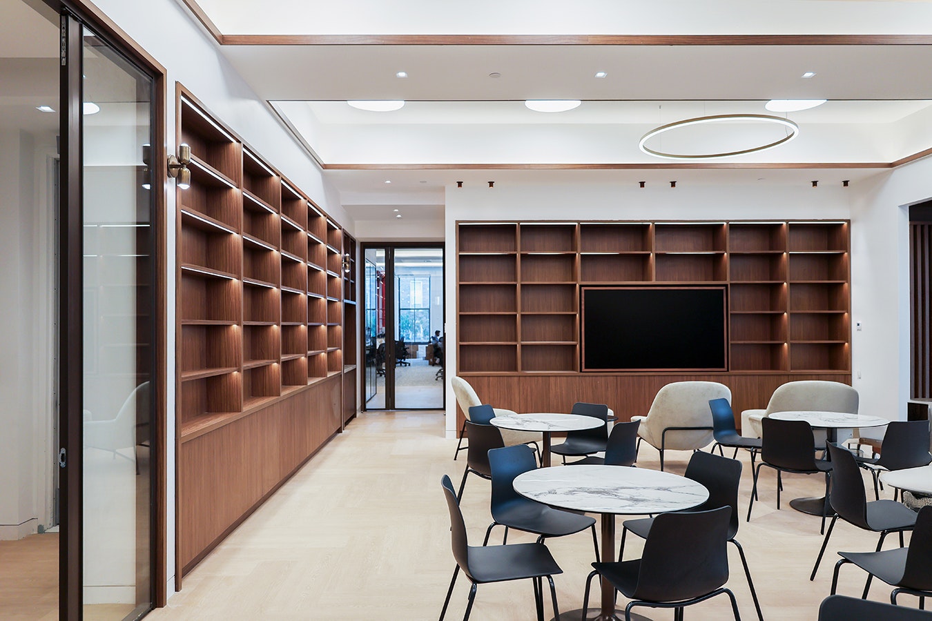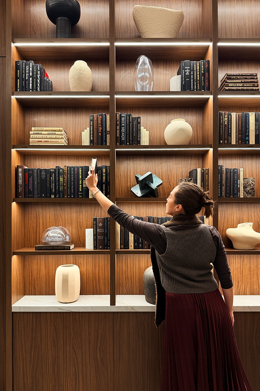 Across the workplace, curated shelving has become a storytelling medium, recording the collective knowledge and shared experiences of the team. Volumes on finance, design, and culture mingle with personal artifacts and art, creating a living collage that reflects who GTS is and the worlds its people engage with.