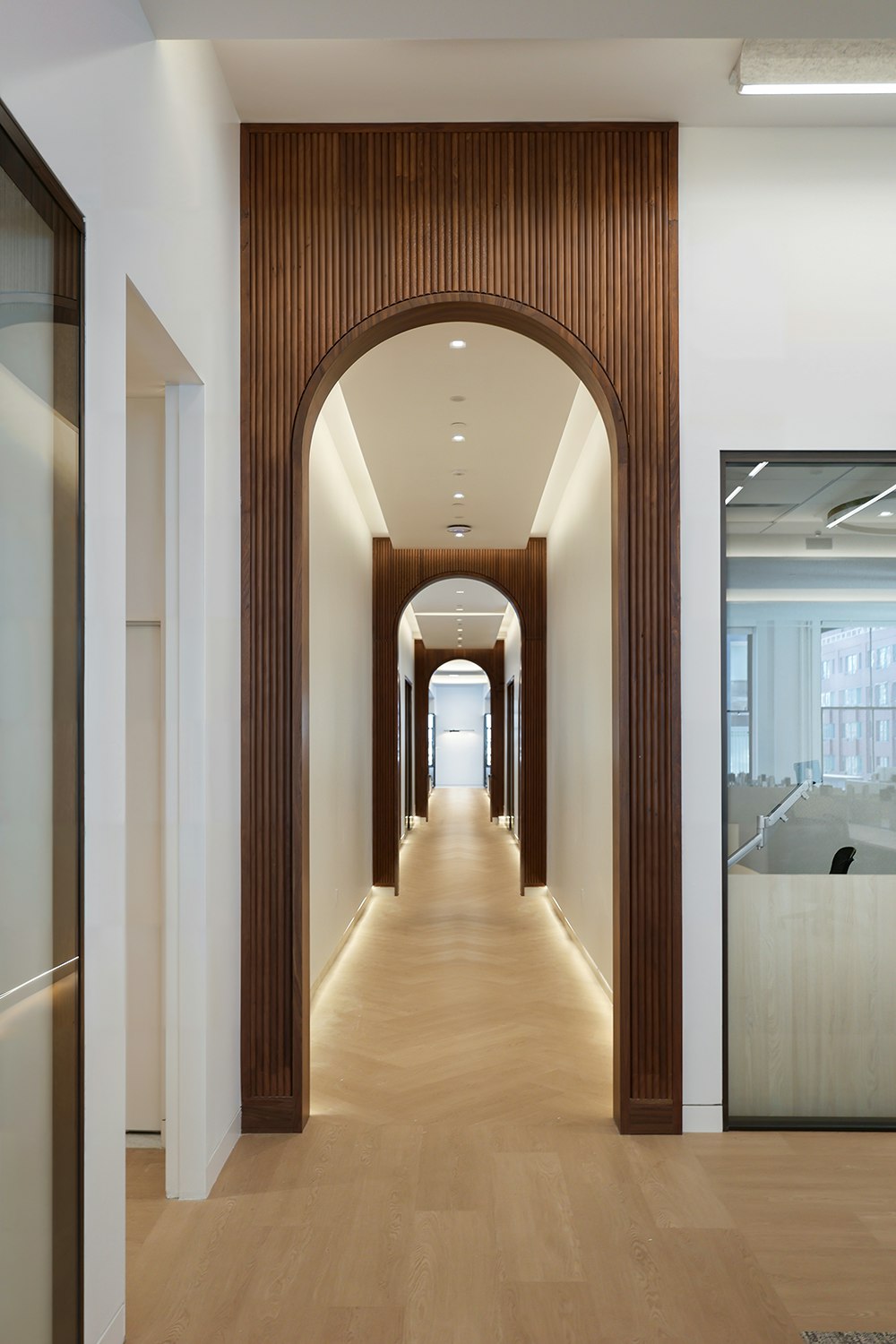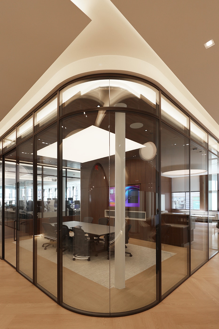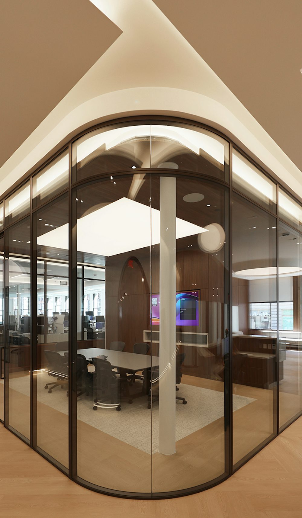 The Oculi introduces a language of curvature and flow that extends throughout the interior. By softening the rigidity of the traditional grid, these gestures evoke a sense of wonder, balance, and beauty. The result is a quiet counterpoint to the linear precision of the trading floor.