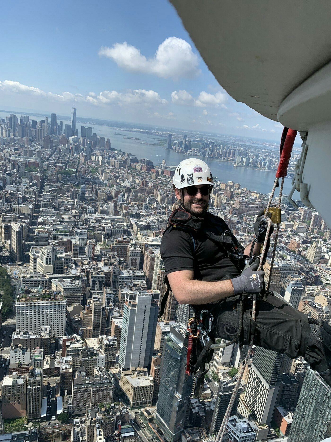 As a restoration architect, I inspect the exteriors of buildings throughout New York City to determine necessary repairs to keep their façades safe while at the same time preserving their historic fabric. In New York City, all buildings over six stories need their exteriors inspected every five years as a matter of public safety. I often conduct these inspections by rappelling from the tops of buildings on climbing ropes, a method which is known as Industrial Rope Access (IRA).