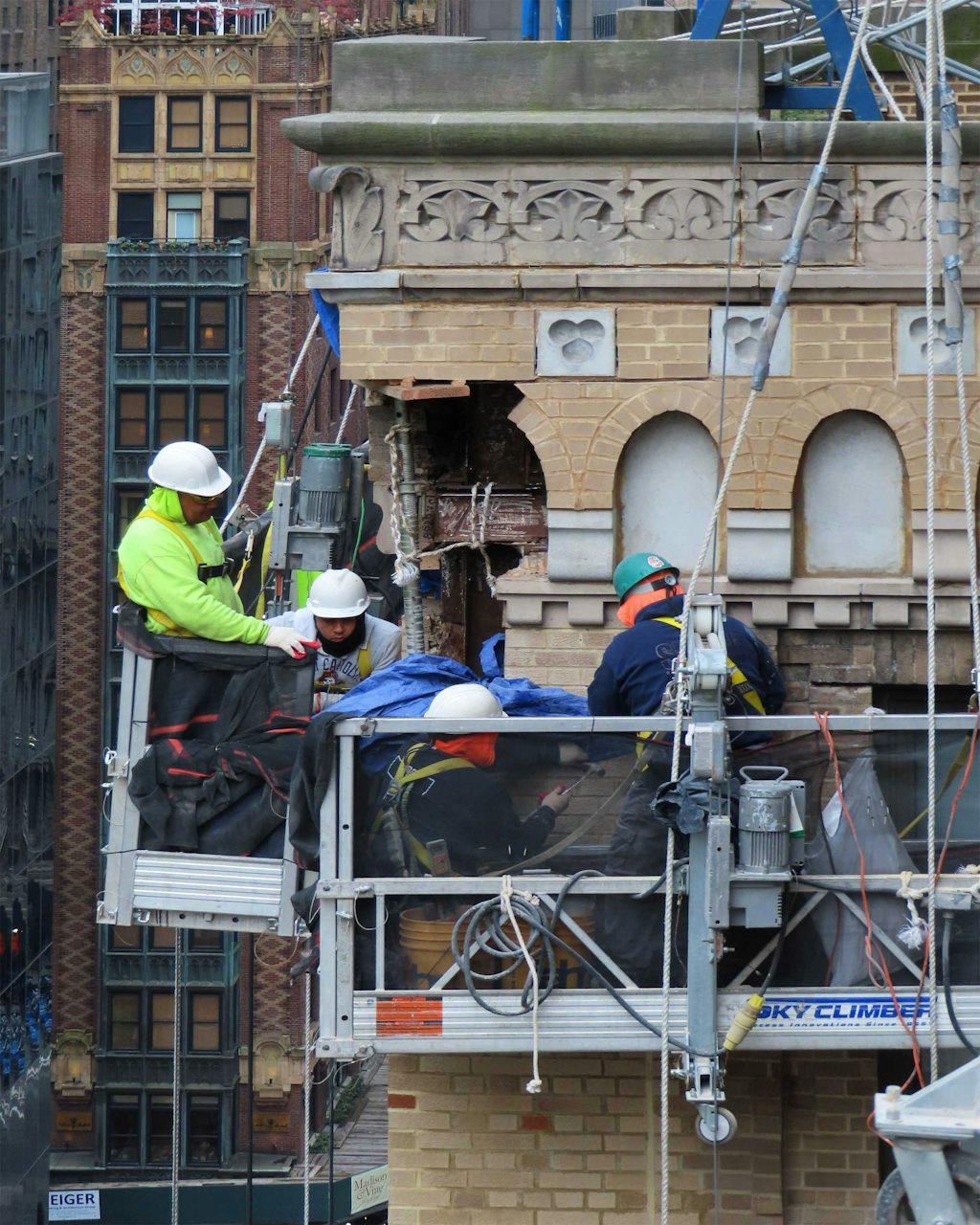 More than 300 units of terracotta were meticulously replaced or reset, and the building’s iconic gargoyles were faithfully recreated in fiberglass, anchored with custom structural systems designed to withstand wind loads over 300 feet above street level. The project’s value grew from $4 million to $6.7 million due to the scope of unforeseen structural repairs, but remained on schedule thanks to EDG’s field agility and technical coordination. The revitalized façade preserves the building’s legacy while meeting modern safety and performance standards, all achieved with minimal tenant disruption.