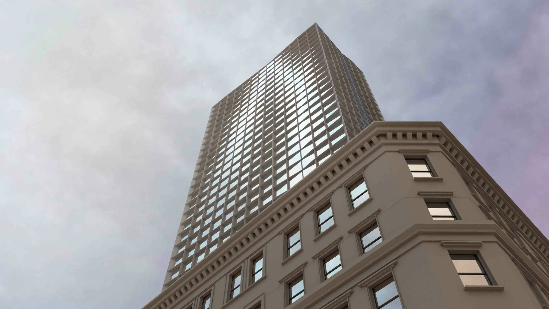 This required extensive coordination to ensure seamless integration with the existing building. We also designed a separate entrance for the tower lobby and carefully navigated egress through existing stair towers. To address wind and seismic challenges, we developed an exterior structural support system that minimized disruption to the building's interior while providing the necessary stability for the towering addition.
