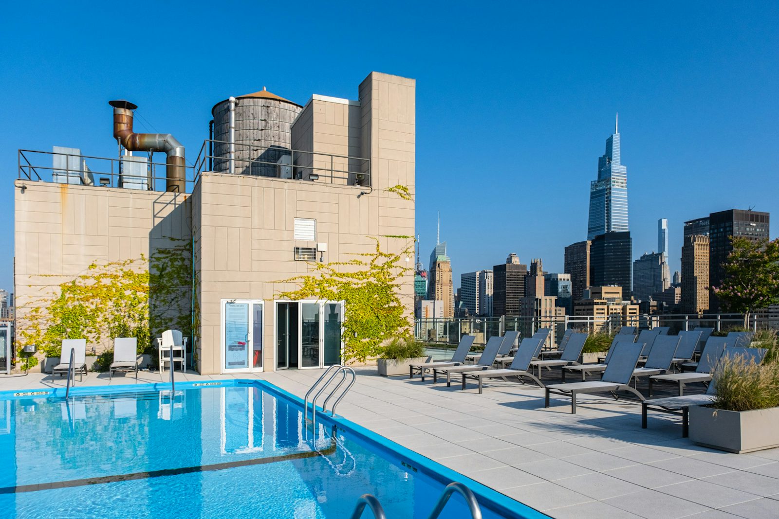 The building's 300+ residents also now return home through a new plaza, which has become a rich civic space fostering congregation and connection. The plan enhances accessibility, visibility, and capacity–while maximizing retail potential and developing a signature design on both the ground plane and the lower roof, creating new opportunities for gathering and convening. The completed restoration project also laid the foundation for EDG's design team to create a revitalized rooftop where residents can enjoy an exquisitely curated 360° panorama of Manhattan's skyline, accompanied by a pristine pool, lush gardens, and pergolas.