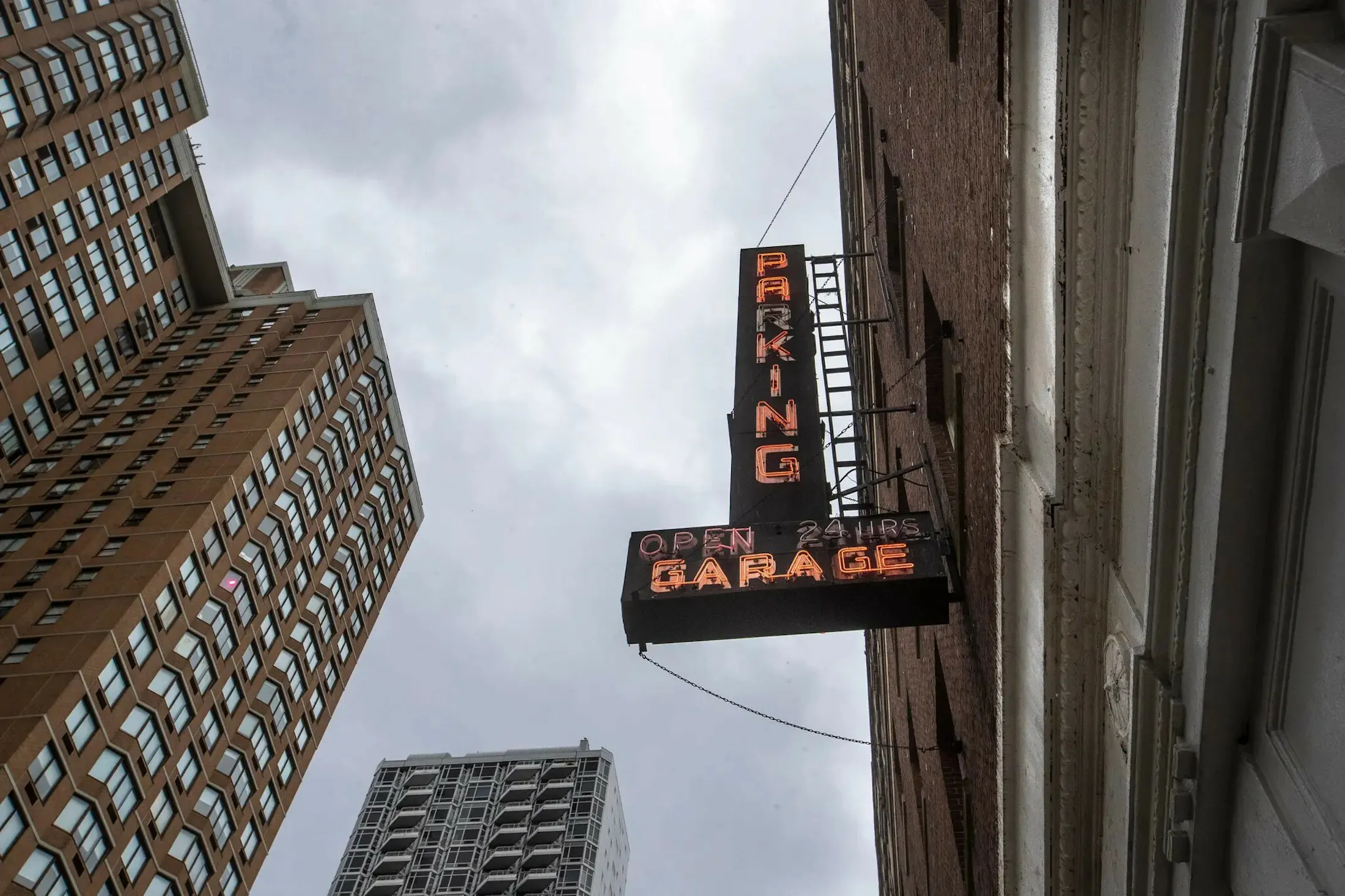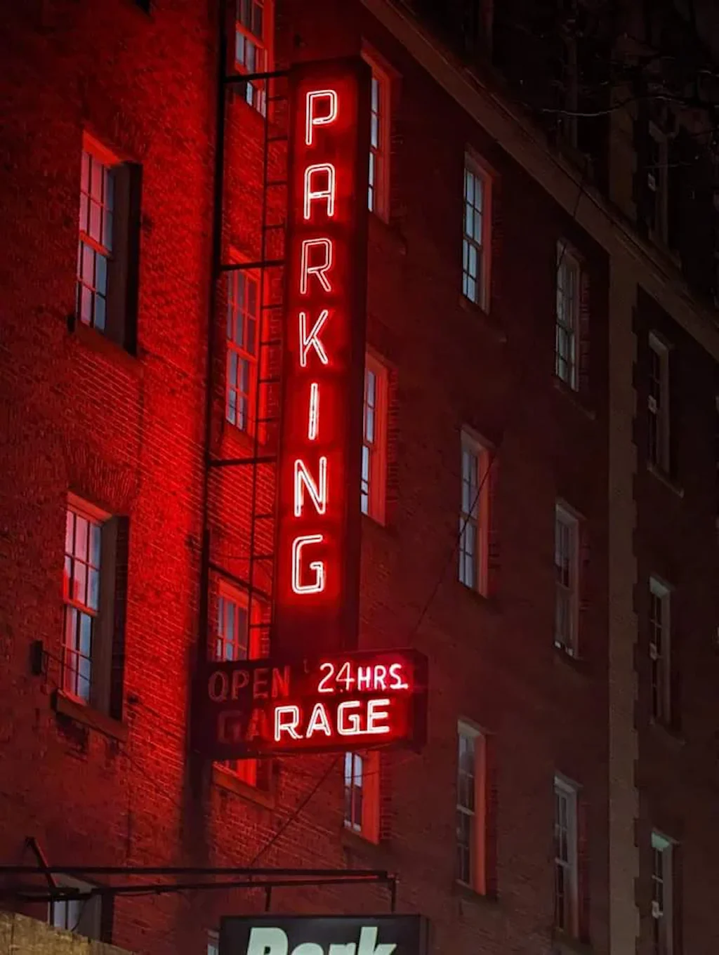 This rare-beauty of a garage in Murray Hill featuring red bricks, plenty of windows, and a decades-old red neon sign.